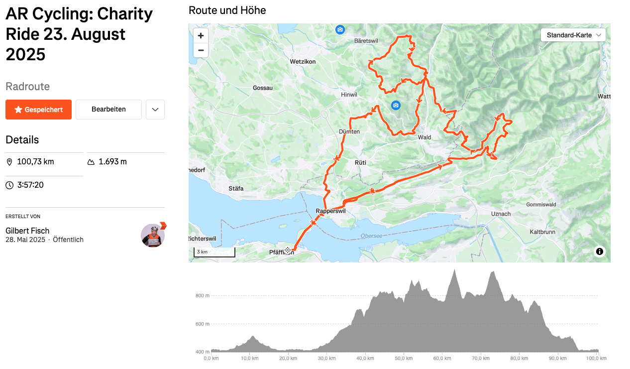 Die Teilnahme kostet mind. CHF 100 und ist eine Spende an unsere Stiftung Summits4Hope. Sie fliesst zu 100% in unser aktuelles WASH-Projekt und wir verwenden 0% davon für Stiftungs-/Eventkosten. Diese Kosten werden von AR Cycling und Gilbert Fisch, Gründer von Summits4Hope, privat finanziert.